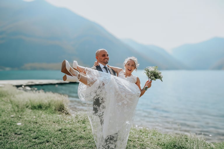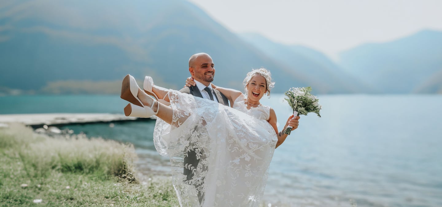 Sul lago di Lugano, dove l’acqua brillante che cattura la luce in un gioco di riflessi, ha fatto da cornice a questo giorno speciale.